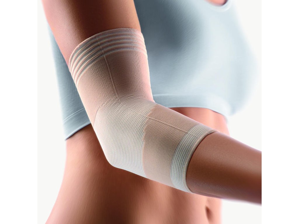BORT Zweizug Ellenbogenstütze je kvalitní kompresní bandáž na loket navržená pro podporu při chronických nebo akutních potížích v oblasti loketního kloubu. Díky rundpletenému úpletu a podélné i příčné elasticitě zajišťuje rovnoměrný tlak a pohodlné přilnutí bez omezení pohybu.