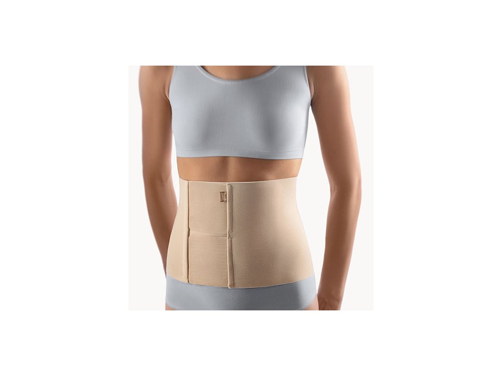 Široký dvoudílný suchý zip umožňuje přesné nastavení komprese dle individuální potřeby, čímž bandáž podporuje hojení, zpevňuje břišní stěnu a ulevuje při sníženém napětí pojivové tkáně, oslabení břišního svalstva nebo prolapsu.