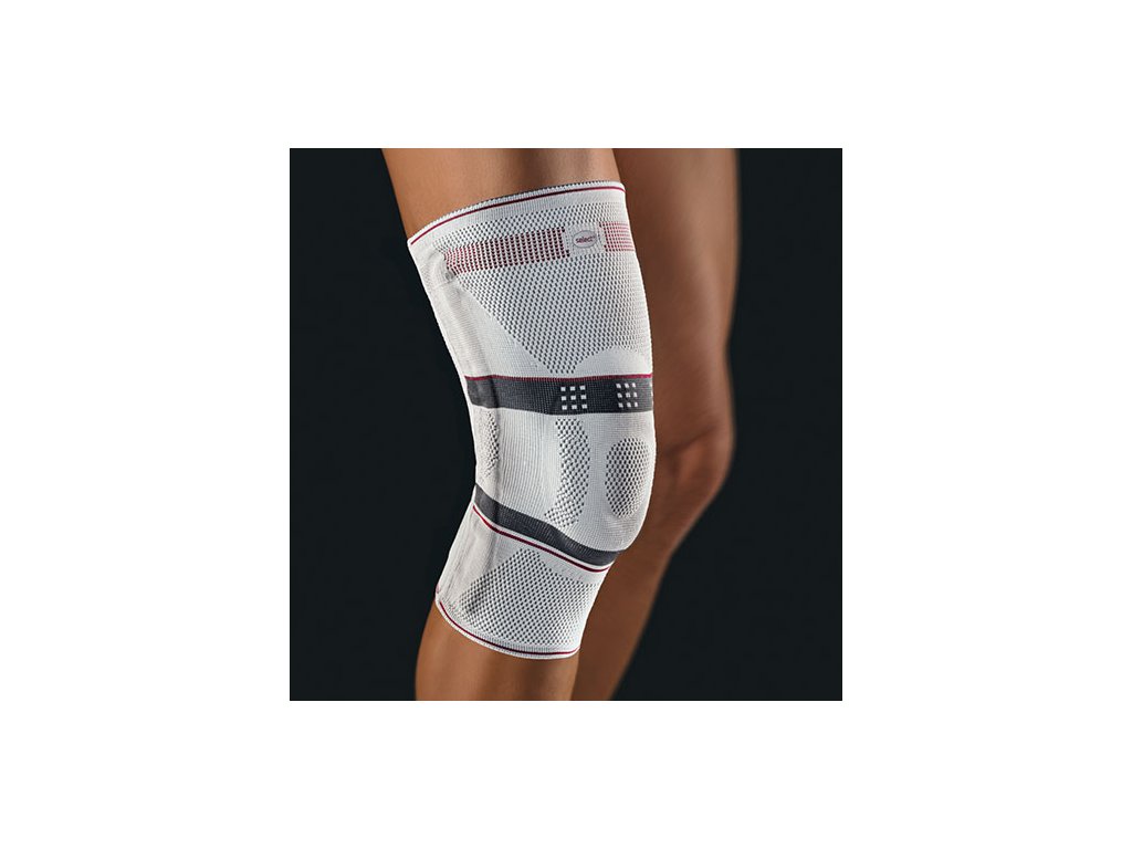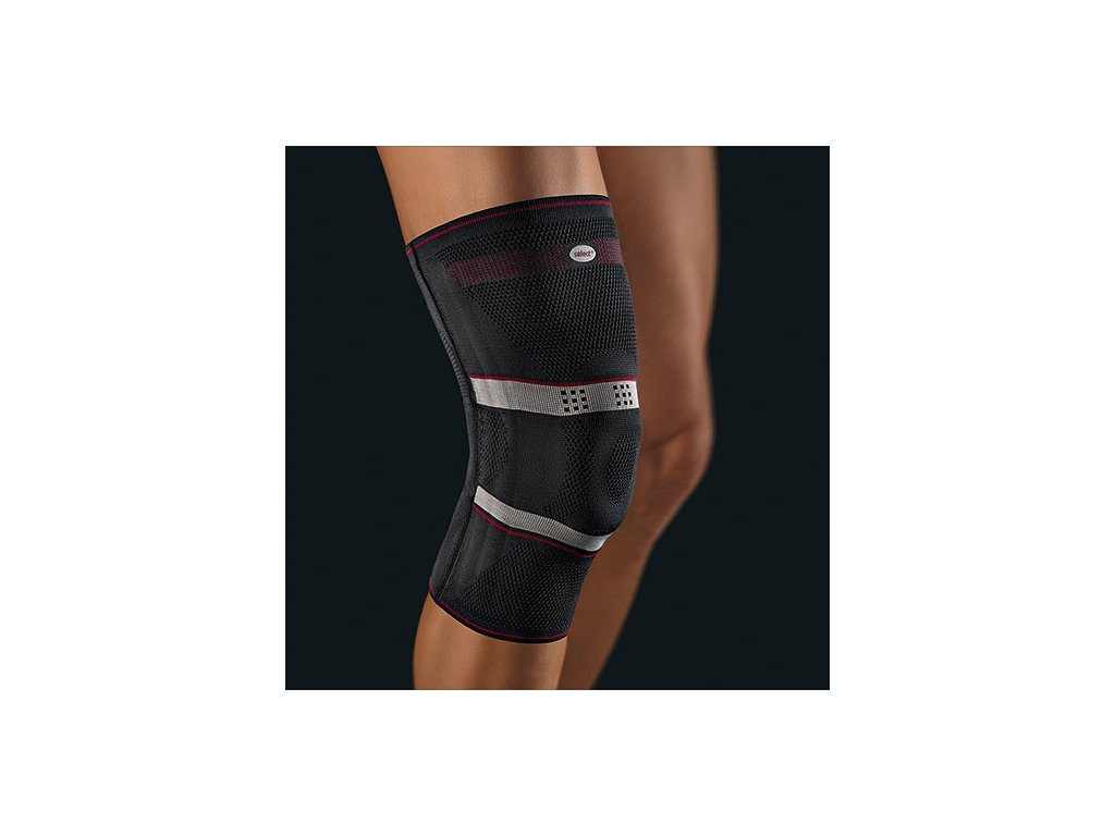 BORT select StabiloGen® je špičková kolenní ortéza určená pro stabilizaci a odlehčení namáhaného kolenního kloubu. Anatomicky tvarovaná viskoelastická pelota s postranními spirálovými výztuhami zajišťuje cílenou kompresi, podporu čéšky a úlevu od bolesti při artróze, nestabilitě vazů nebo meniskopatii.