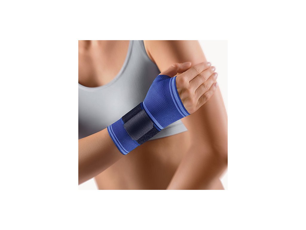 BORT Handgelenkstütze mit Daumenaussparung je kompresní ortéza určená k podpoře zápěstí a střední části ruky při lehčích poraněních, přetížení nebo při rekonvalescenci po sejmutí sádrové fixace.