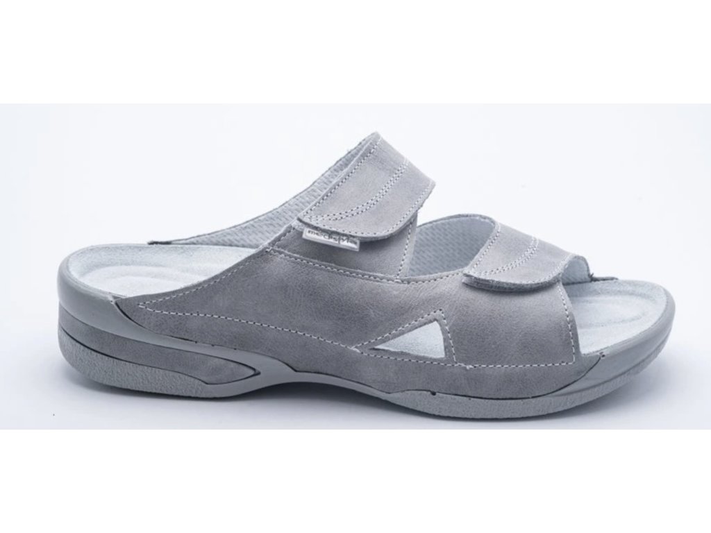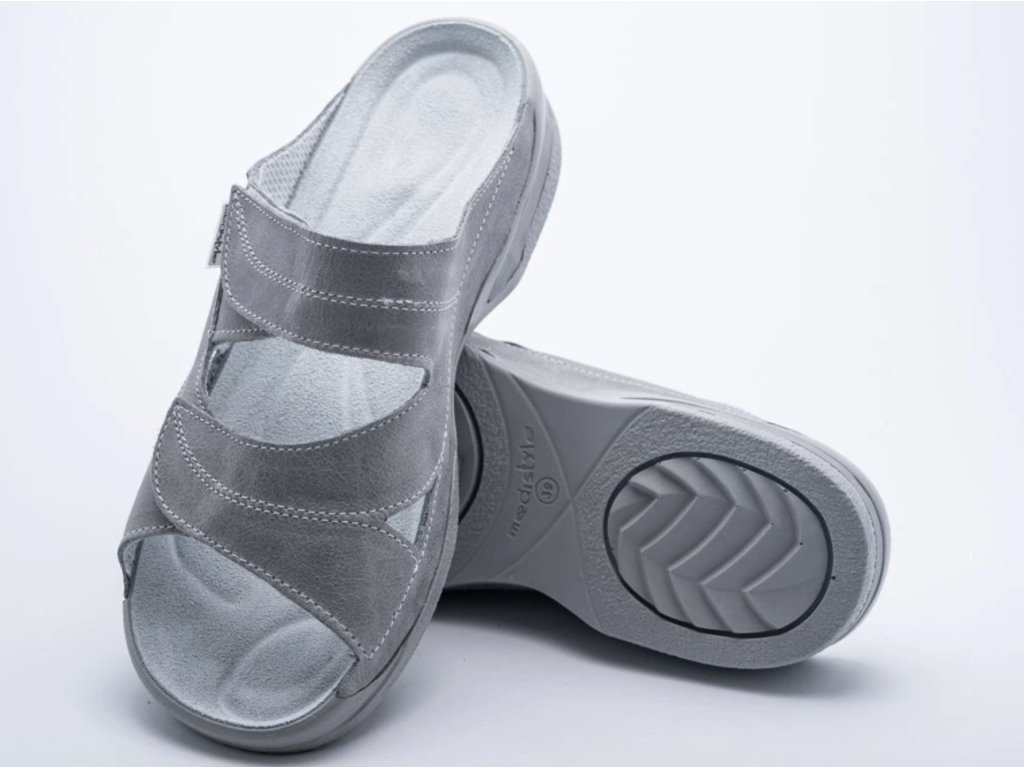 Objevte komfort bez kompromisů se zdravotní obuví MediStyle LUCY v elegantním šedém provedení. Tento model je navržen pro ženy, které hledají spolehlivou, pohodlnou a zároveň vkusnou obuv vhodnou do kanceláře, zdravotnického prostředí nebo jako kvalitní domácí přezůvky. Šedá barva je nadčasová, snadno kombinovatelná a působí decentně.Jedná se o klasický střih pantofle s otevřenou špičkou a patou, který zaručuje maximální prodyšnost a brání přehřívání nohou i při dlouhém stání. Bota je vyrobena z vysoce kvalitní přírodní kůže, která je příjemná na dotek a přizpůsobí se tvaru vašeho chodidla.