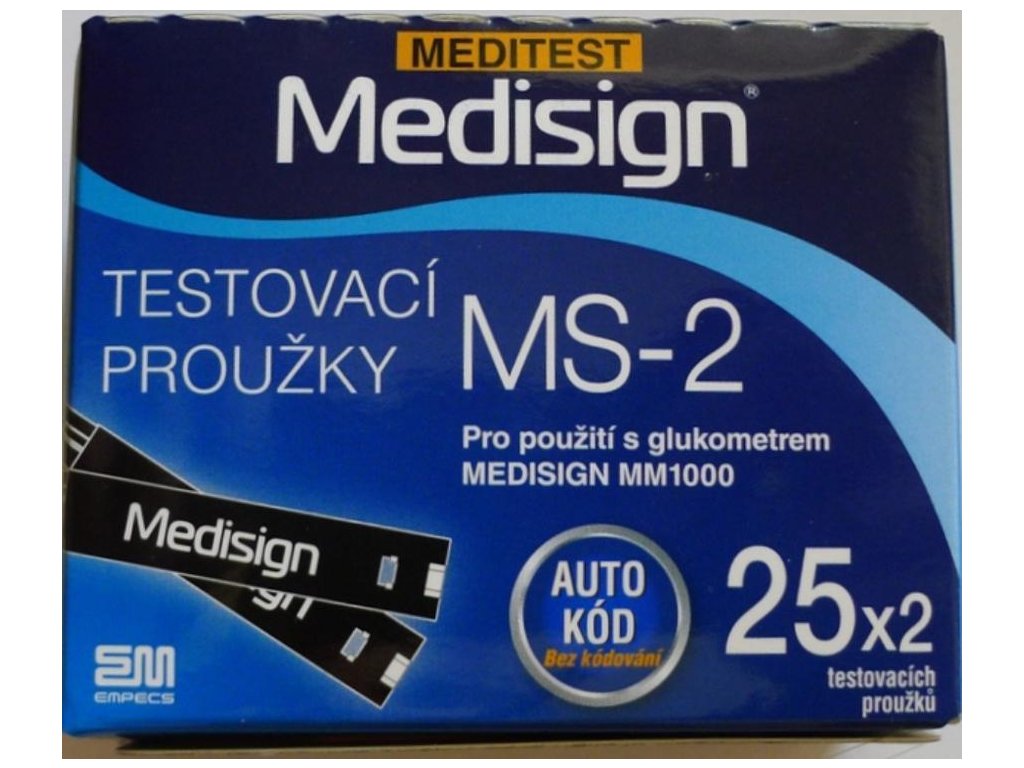 - Meditest Medisign MS-2 testovací proužky pro měření krevní glukózy, pro použití s přístroje Meditest Medisign MM1000.