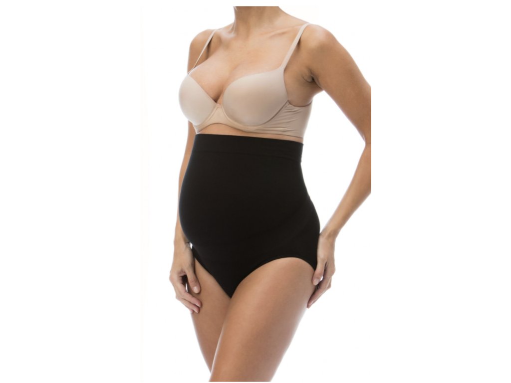 - Vysoký pas přes bříško: Pružný a bezešvý pás se přizpůsobuje rostoucímu bříšku, poskytuje lehkou oporu a zamezuje tlaku na citlivé oblasti.