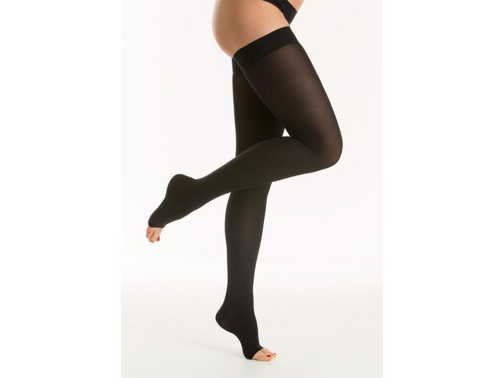 Stehenní kompresní punčochy z jemného mikrovlákna RLX 2170 uzavřená špice černá
