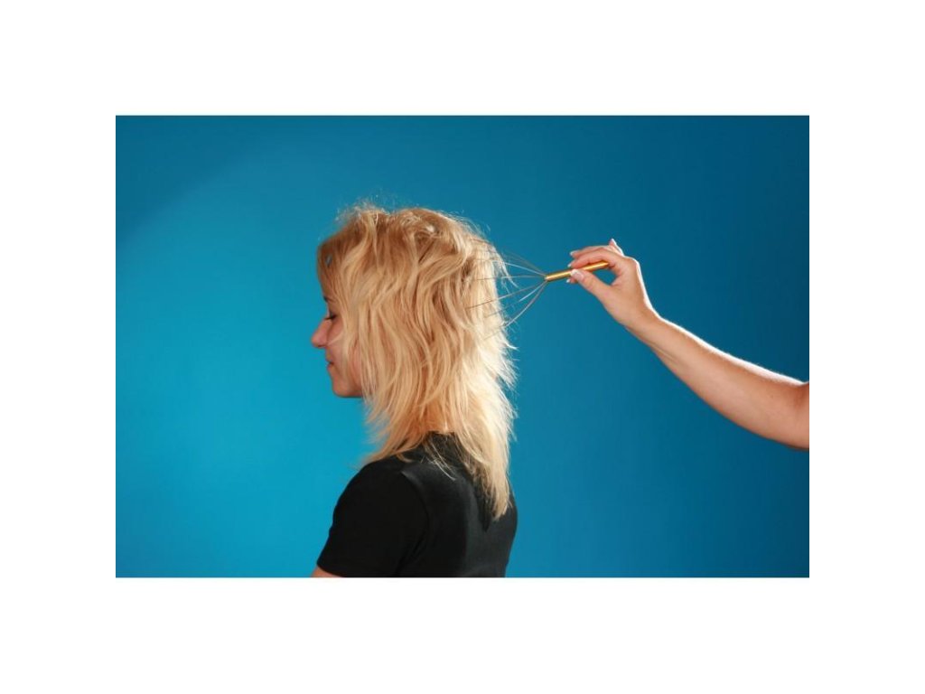 - Metlička má dvanáct ocelových drátků, šest krátkých, šest delších, konec drátku je zakončen plastovou koncovkou pro příjemnou masáž.